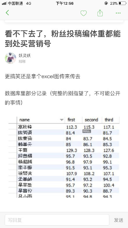 9,因為是假表,小七宿舍的體重圖網上有, 楊超越170左右的身高43kg?這麼尬黑也有人信,一張毫無來源的表,誰都能做出來,還搞一波yxh,踩誰捧誰啊?!