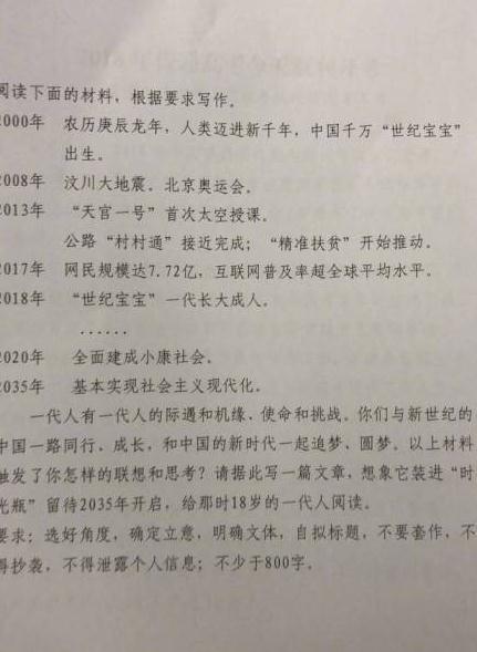 4,看圖審題,寫給2035的那個他,給出的題材是zg2000年到現在,發展取得的一些成就,寫成一篇文章留給2035年18歲的人讀。題材與易烊千玺本人沒有任何關系,此2035非彼2035!